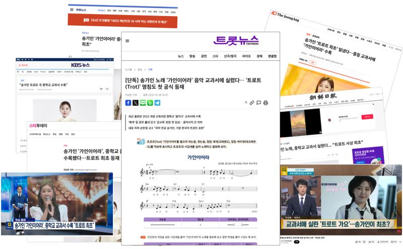 트롯뉴스(www.trotnews.co.kr)가 단독 보도(10월 28일)한 가수 송가인의 대표곡 ‘가인이어라’의 중학교 음악 교과서 수록 소식은 단순한 연예 뉴스를 넘어 대한민국 대중음악사의 한 획을 긋는 ‘사건’으로 기록될 전망이다.