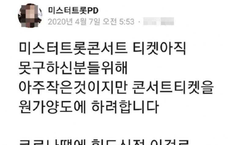 ‘미스터트롯’ 콘서트에서도 사칭 사기와 암표 피해가 이어졌다. 코로나19로 공연이 연기된 틈을 타 SNS에는 ‘미스터트롯PD’라는 이름으로 제작진을 사칭한 게시물이 등장했다. 전국 각 지역 공연 티켓을 원가로 양도한다는 글이었지만 사실상 사기였다. 제작진은 “형사 고소 등 강력한 법적 조치를 취한다”고 엄정 대응하기도 했다.
