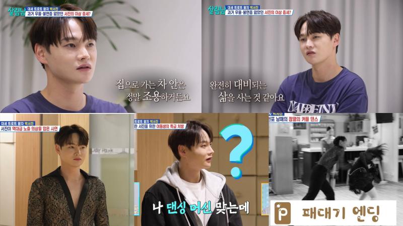 동생 효정과 박서진은 분리수거를 하는 중 “박스도 테이프라는 짝이 있는데…” 라고 말해 MC 이요원은 “가을 타는거냐?”고 묻자 “힘들다”고 답변했다. 또 효정에게 “남자에게 가을이 어떤 의미인지 아냐”고 물으면서 무기력한 모습을 보였다.