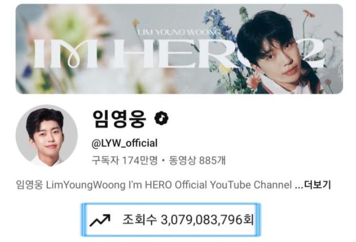 17일 기준 임영웅의 공식 유튜브 채널 ‘임영웅’은 총 누적 조회수 30억7000만을 기록했다. 채널은 2011년 12월 2일 개설 이후 지금까지 885개의 영상이 업로드됐다.