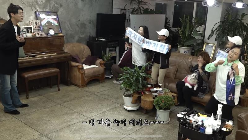 박지현은 미용사 아들이 신청한 ‘찾아가는 트로트’라는 코너로 미용실을 방문해 팬덤 ‘엔돌핀’ 가족들도 만났다.