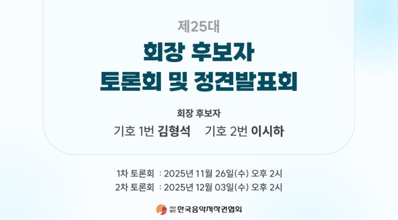대중에게 친숙한 ‘스타 작곡가’ 김형석(기호 1번) 후보와 협회 내부 사정을 꿰뚫고 있는 ‘실무 전문가’ 이시하(기호 2번) 후보 간 맞대결이다.
