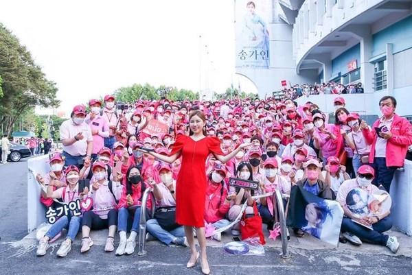 송가인이 팬클럽 ‘어게인’을 위해 직접 작사한 곡 ‘평생’은 팬덤 사이에서 ‘국가’처럼 불린다. “이 생명 다할 때까지 당신 곁에 있겠다~”는 가사는 단순한 노래가 아니라 팬들과 맺는 ‘혈맹’과도 같은 약속이다.
