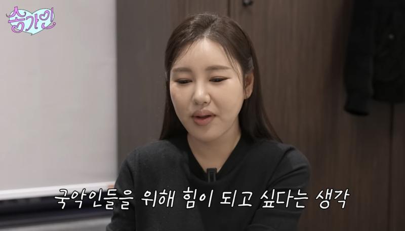 김준수는 “선배는 국악인들에게 힘이 되려고 유명해지고 나서 창극단 공연도 더 많이 보러와주고 커피차도 보내줬다. 또 우리 둘이 무명시절 판소리 공연을 보러 간 적이 있는데 누나가 ‘내가 유명해지면 국악인들을 후원해주고싶다’고 말한적이 있다”고 말해 송가인이 오래전에 한 약속을 잊지않고 지켰다는 점을 고마워 했다.