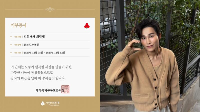 (좌)사랑의 열매/(우) 김희재 SNS 가수 김희재 팬클럽 ‘희랑별’이 올해도 크리스마스를 맞아 사랑의열매에 2,989만원을 기부했다.