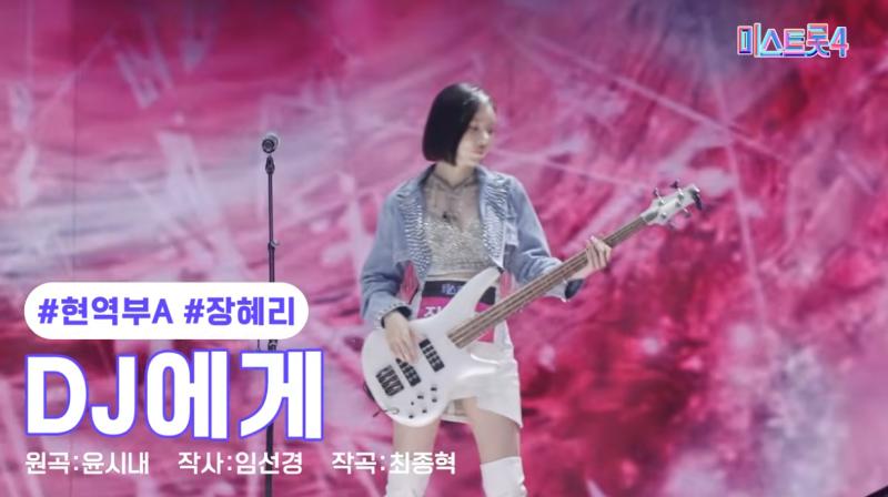 지난 25일(목) 방송된 TV CHOSUN ‘미스트롯4’ 2회에서 시청자들의 눈과 귀를 단숨에 사로잡은 주인공은 현역부A로 출전한 장혜리였다. 그녀는 트롯 무대에서 보기 드문 베이스기타 연주를 전면에 내세우며 압도적인 존재감을 과시했다.