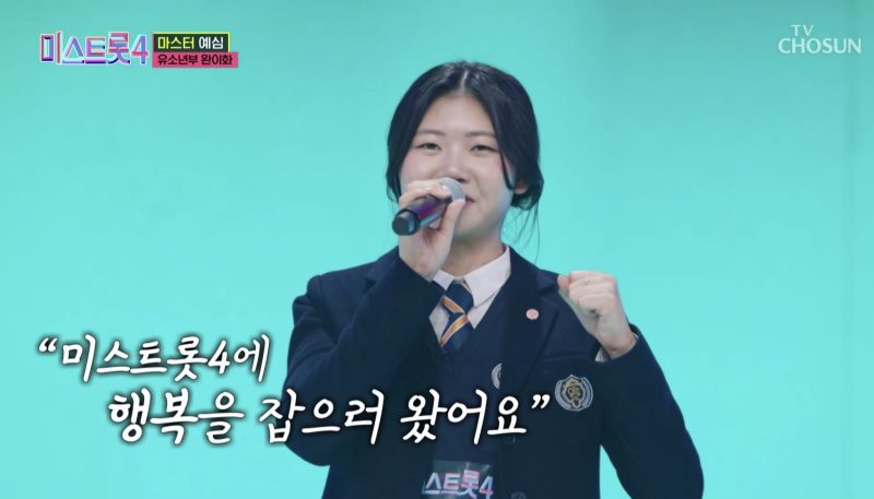 완이화는 "행복이 자꾸만 도망가는 것 같아서 ‘미스트롯’4를 통해 행복을 잡으러 왔다"고 밝혔다.