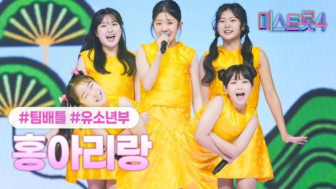 가장 뜨거웠던 대결은 평균 나이 14.8세의 유소년부(윤윤서, 김수빈, 전하윤, 배서연, 완이화)와 예심 ‘선’ 홍성윤이 포진한 타장르부B(홍성윤, 허새롬, 신현지, 황현송)의 국악트롯 맞대결이었다.