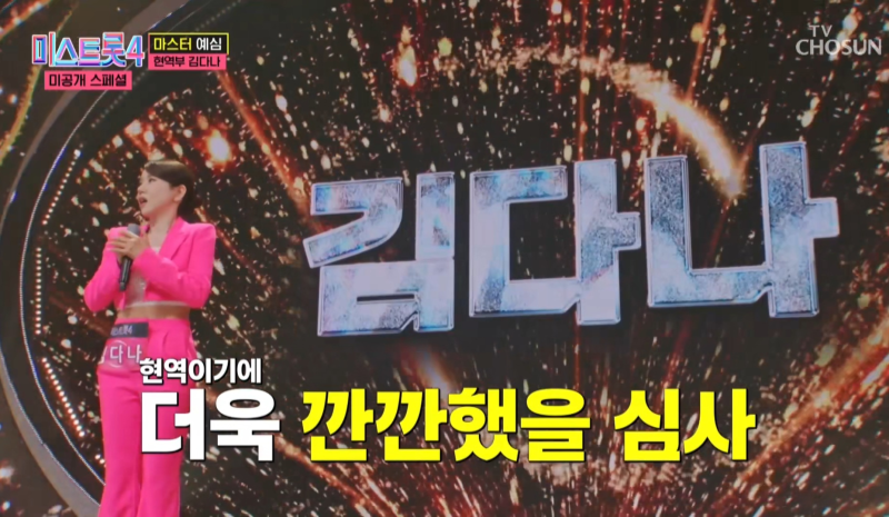 사진=TV조선 '미스트롯4 미방분 스패셜' 지난 6일 방송된 ’미스트롯4 미공개 스페셜‘에 숨을 올하트 합격자가 있었다. 16년차 가수 현역부 김다나가 그 주인공이다.