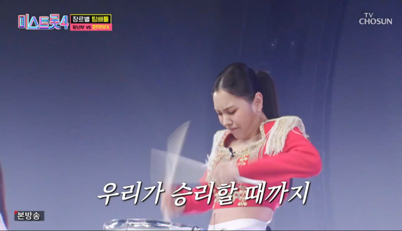 사진=TV조선 '미스트롯4'7전8기 오뚜기 허찬미가 '1분간의 신들린 드럼 퍼포먼스'로 대한민국을 홀렸다.