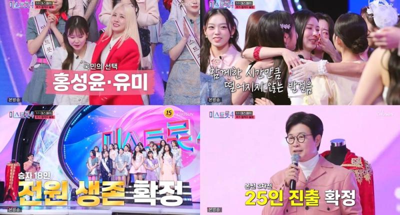 이로써 18명의 승자가 본선 3차 진출을 확정했다. 여기에 더해 국민대표단 현장 투표로 천재 구음 홍성윤과 왕년부 유미가 추가합격을 확정했다. 마스터 픽 추가합격자로는 이소나, 윤태화, 정혜린, 김혜진, 장혜리가 이름을 올리며 총 25인이 본선 3차에 진출하게 됐다. 벼랑 끝에서 구사일생으로 생존한 이들 추가합격자들은 안도의 눈물을 흘렸고, 안타깝게 탈락을 확정지은 트롯퀸들 또한 폭풍 눈물을 쏟아냈다.