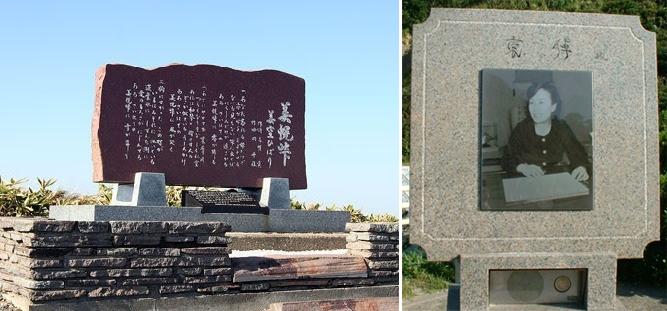 일본 도토산코에 있는 미소라 히바리 노래비(좌), 후쿠시마현이와키시에설치된미소라히바리유영비(우)