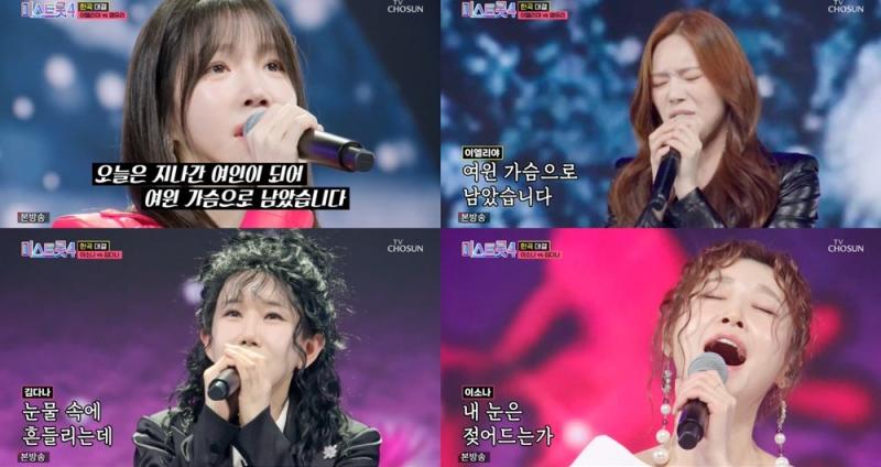 준결승까지 코앞이다. TOP10에 안착하기 위한 16인 트롯퀸들의 치열한 승부와 전설급 명장면이 쏟아진 레전드 미션. 과연 1라운드 상위권인 길려원, 홍성윤, 허찬미는 2라운드로 굳히기에 돌입할 수 있을지. 중하위권 트롯퀸들은 반전의 드라마를 쓸 수 있을지. 라운드를 거듭할수록 더욱 피 튀기는 대결이 펼쳐지고 있는 TV CHOSUN '미스트롯4'는 매주 목요일 밤 10시 방송된다.