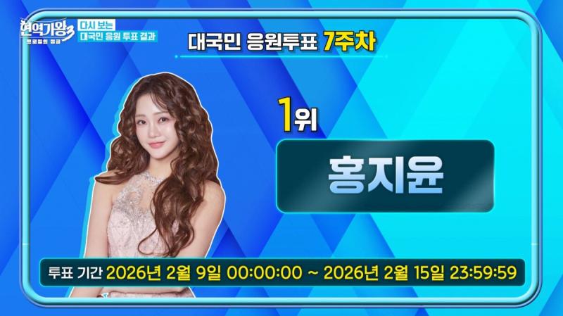 ‘현역가왕3’ 대국민 응원 투표 7주 차 투표 결과가 공개됐다.