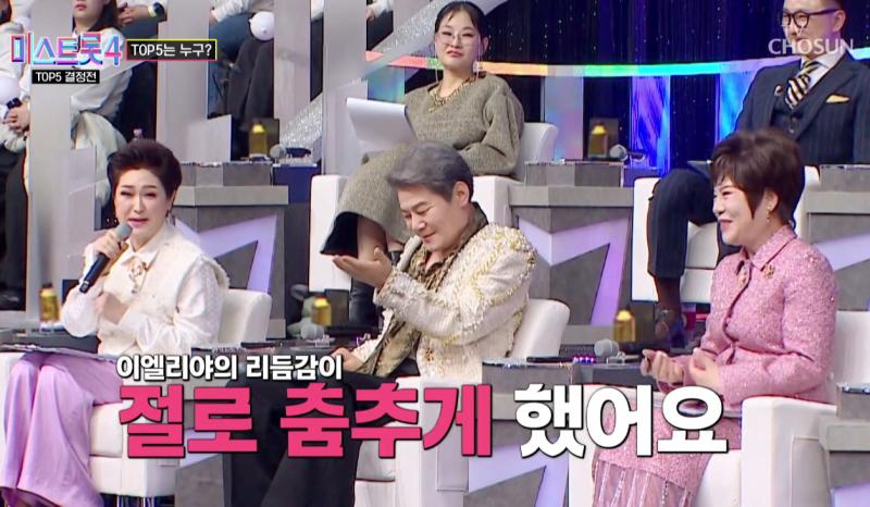 이미자의 ‘황혼의 블루스’를 특유의 애절한 허스키 보이스와 섬세한 표정 연기로 승화시킨 이엘리야에게 안성훈과 김용임 등 마스터들의 극찬이 쏟아졌음에도, 실제 점수는 1468점이라는 압도적 최하위 수치를 기록했다.
