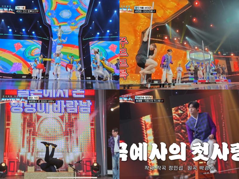 첫 대결은 트롯 신동 유지우와 ‘4미터 인간 탑’의 무동 기인이었다. 유지우는 성인 두 명이 쌓은 4m 높이의 탑에서 ‘풍악을 울려라’를 떨림 없는 목소리로 완벽히 불러 모두를 놀라게 했다.