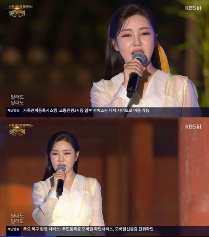 27일 KBS에 따르면 송가인은 26일 오후 5시40분 방송된 KBS1 ‘열린음악회’에 출연했다. 이날 무대에서 송가인은 ‘월하가약’, ‘아사달’, ‘엄마아리랑’ 등 세 곡을 연이어 선보이며 깊은 감동을 전했다.