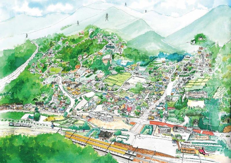 실레마을 전경(오른쪽이 떡시루 처럼 움푹 들어간 형태)