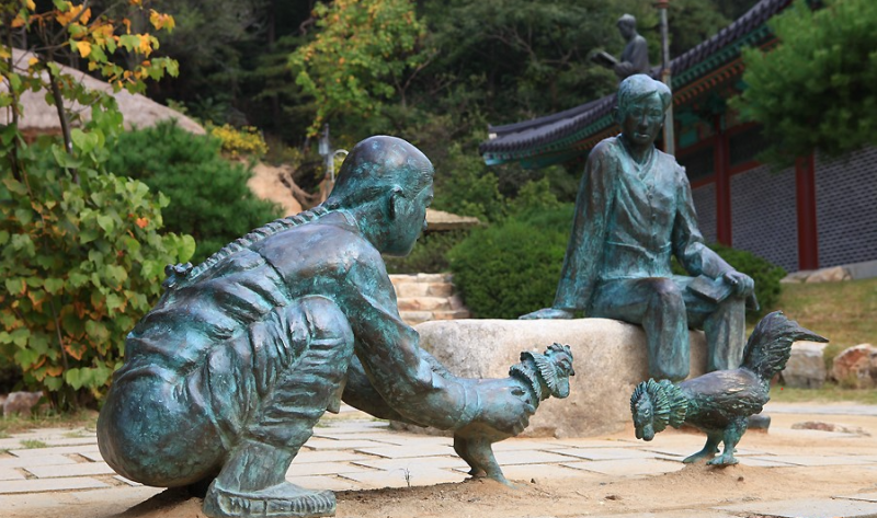 김유정 소설에 등장하는 <봄봄>의 장면을 조형물로 만들어 놓은 것도 있고, <동백꽃>의 한 장면을 연상하게 하는 닭싸움 조각도 있다.