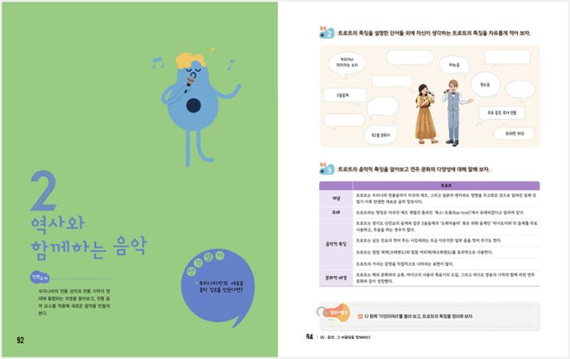 해당 교과서에서는 단순히 노래가 소개되는 것을 넘어, 트로트를 비중 있게 다루며 구체적인 학습 활동을 제시하고 있다.