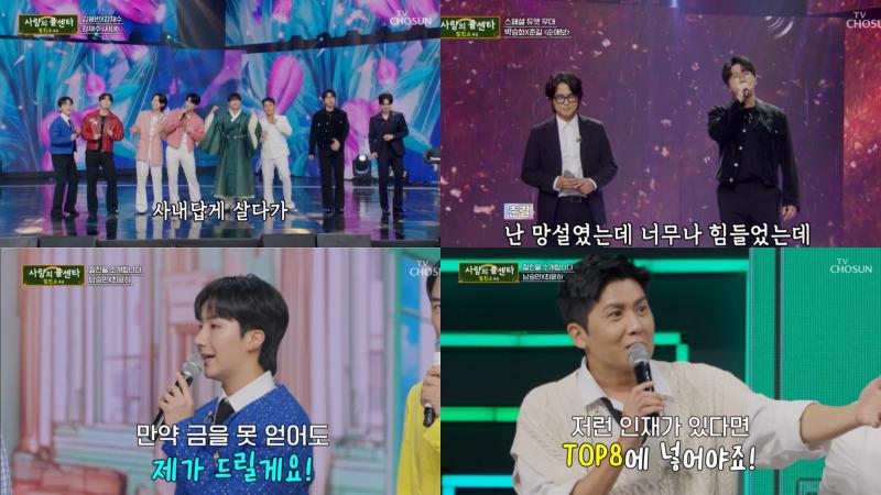 사진=TV 조선이와 함께 오랜만에 보는 반가운 얼굴들의 노래도 들을 수 있어 눈과 귀가 즐거웠다. 유리상자 박승화와 홍경민이 그 주인공. 춘길의 절친으로 나온 박승화는 춘길과 함께 추억의 노래 유리상자의 '순애보'를 부른데 이어 개인 경연공으로는 "사랑을 잃어버린 나'를 불러 96점을 받았지만 많은 박수를 받았다. 또 홍경민은 윤도현의 “사랑했나봐”를 불러 100점을 받았다.