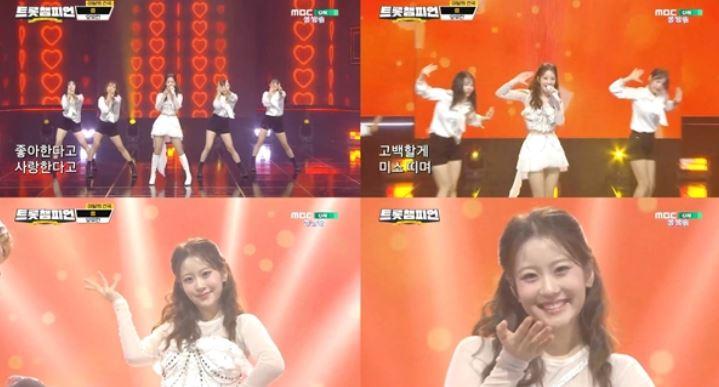 14일 토탈셋에 따르면, 전날 방송된 MBC ON ‘트롯챔피언’에서 오유진은 신곡 ‘썸’ 무대를 최초로 공개했다. 화이트 투피스를 입고 등장한 그는 사랑스러운 표정과 자신감 넘치는 퍼포먼스로 무대를 가득 채웠다. 오유진의 맑고 힘 있는 음색이 어우러지며 무대는 화사한 분위기로 물들었다.