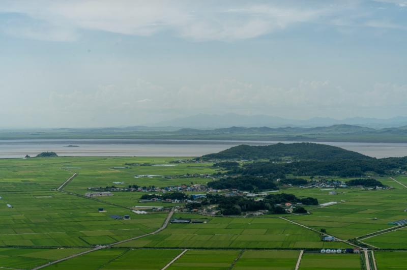 화개산의 대형 전망대에서는 2~3km의 갯벌과 바다가 섞인 강화만 건너편에 황해도 연백군 연안읍 일대의 마을을 살필 수 있다.