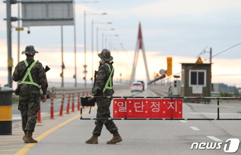 검문 중인 교동대교 / 사진 출처 = 뉴스1