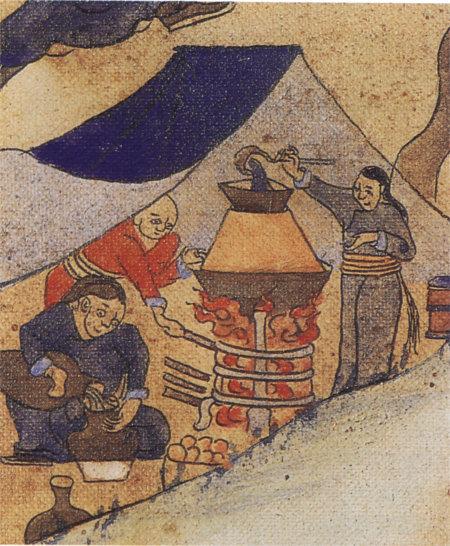 당시 이슬람교는 술을 금지했기에 아랍문화권에서는 증류기술을 약이나 기름을 얻는데 사용하다가 13~14세기 몽골 제국의 중동 및 유라시아 지배로 전 세계 증류주 확산에 결정적인 역할에 기여했다.