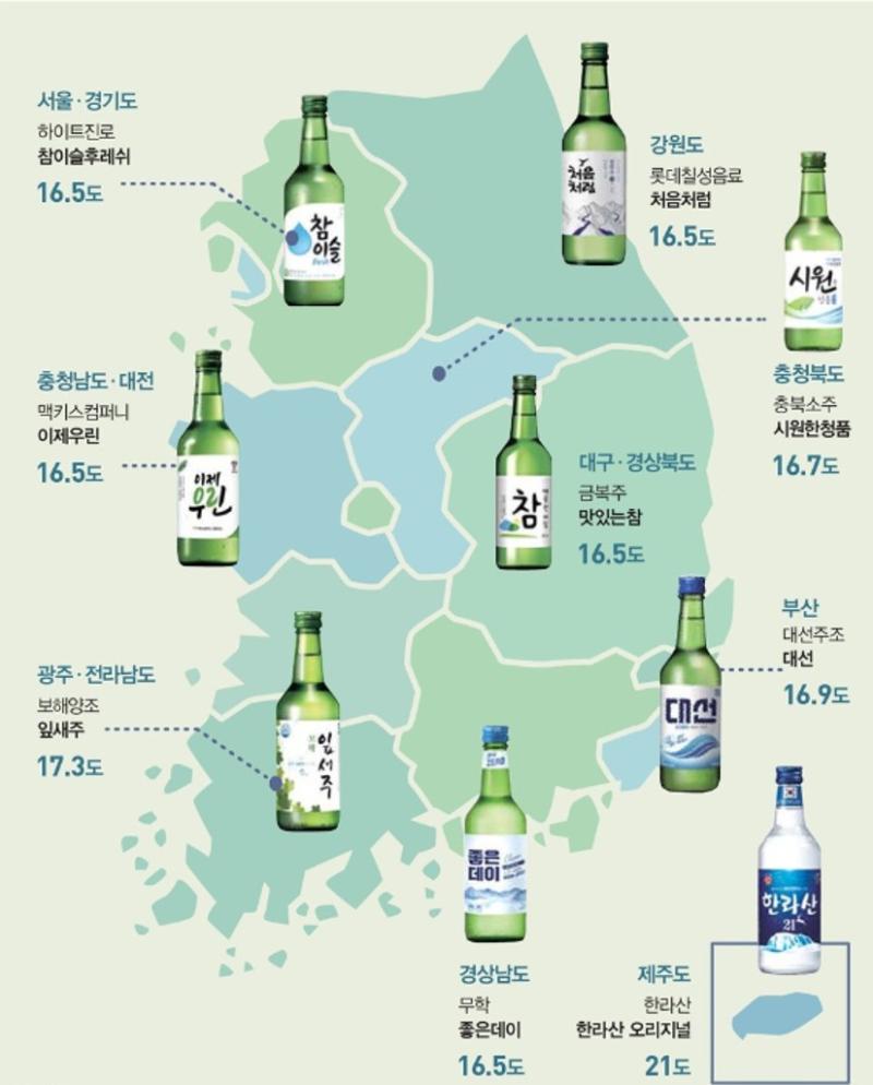 지역별 소주 / 사진 출처 = 한경 비즈니스 1385호