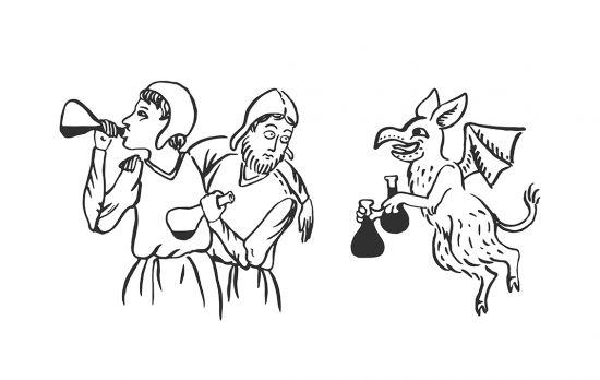 서양에서 술을 처음 만들 때 악마가 도왔다는 이야기가 전해진다. 그래서 술을 ‘악마의 음료’라고 불렀고, 술잔에는 악마의 기운이 있을 뿐만 아니라 술을 마시기 위해 입을 벌리면 악마가 몸속으로 들어간다고 믿었다.