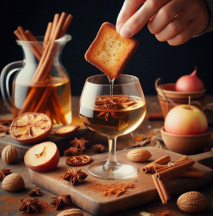 17세기 영국에서는 와인의 풍미를 더 하고 침전물을 걸러내기 위해 살짝 구운 빵 조각이나 양념을 한 빵 조각을 술잔에 넣어 마시는 풍습이 있었다. 당시 와인은 지금처럼 정제된 맛이 아니라 산미가 강하거나 불순물이 섞여 있는 경우가 많았는데 빵을 넣으면 불쾌한 맛을 흡수해 목 넘김을 더 부드럽게 만들어 주었다.