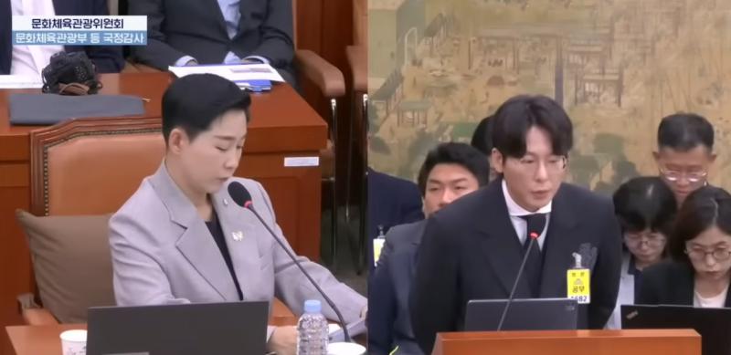 국회에 출석해서 협회의 문제점을 증언하는 이시하 이사(우), 사진 = 국회방송