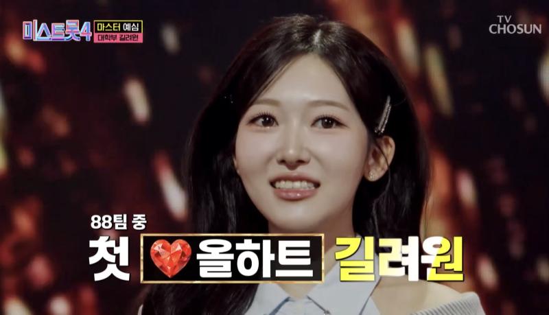 길려원 TV 조선 '미스트롯4'18일 방송된 ‘미스트롯4’에서 88팀 중 첫 올하트를 받은 대학부 길려원이 TV 조선 공식 유튜브에서 높은 조회수를 기록하고 있다.