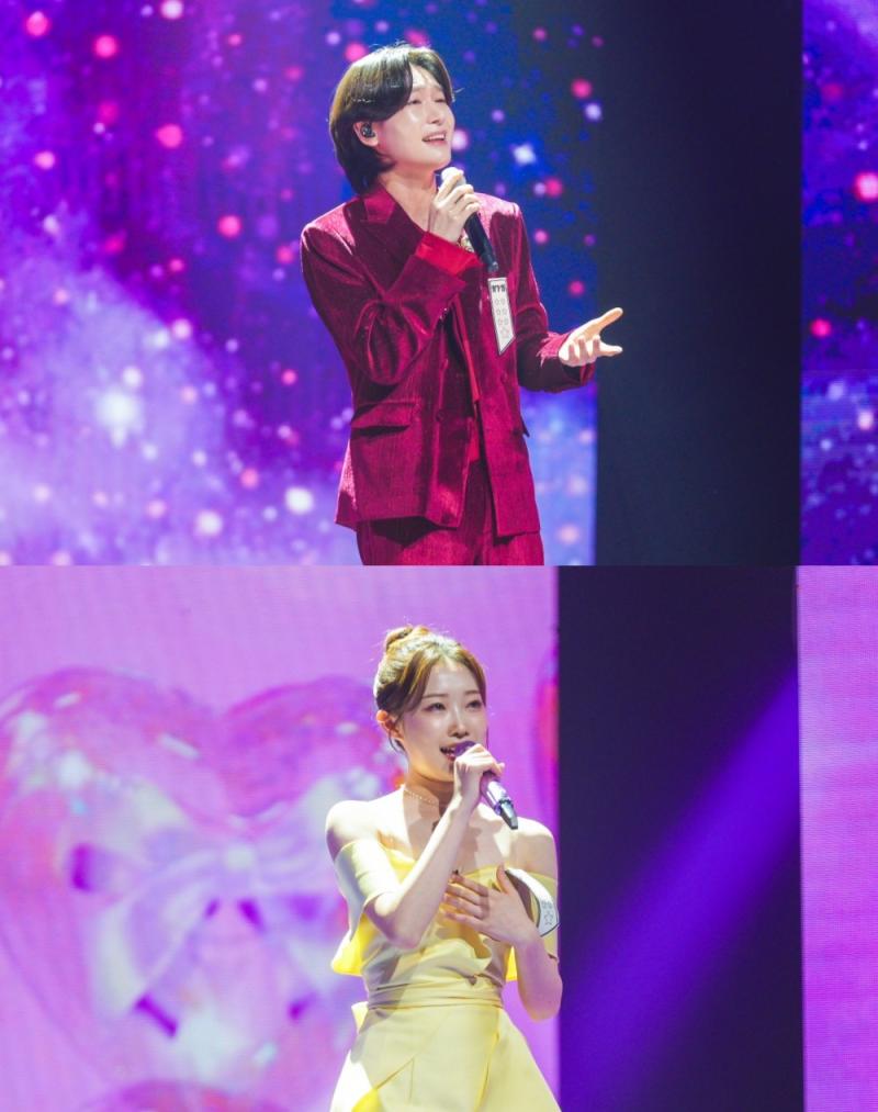 공개된 사진 속 김용빈과 정서주는 나란히 서서 여유로운 미소를 짓고 있다. 그러나 노래가 시작되자 표정은 단숨에 바뀐다. 웃음기는 사라지고, 오직 승부에 집중한 채 혼신의 무대를 펼치는 두 사람의 모습이 긴장감을 끌어올린다. 자존심을 건 두 우승자의 정면 승부, 과연 승리의 주인공은 누가 될지 관심이 집중된다.