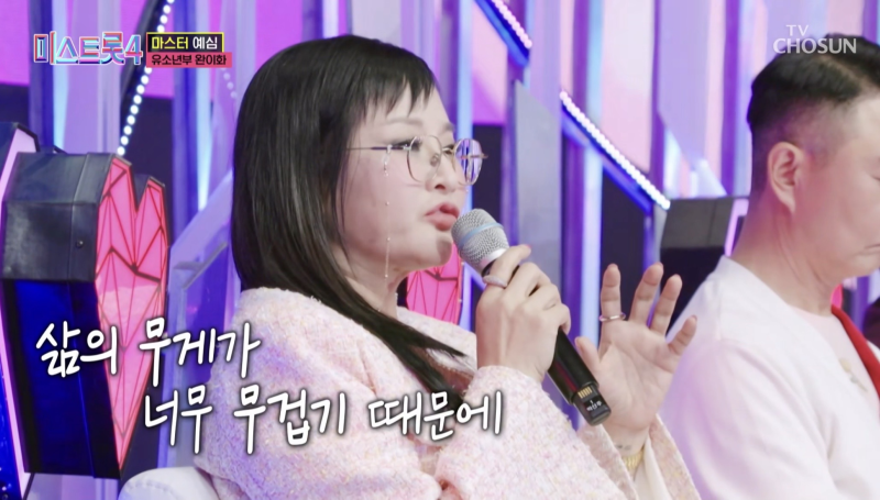 완이화는 "행복이 자꾸만 도망가는 것 같아서 ‘미스트롯’4를 통해 행복을 잡으러 왔다"고 밝혔다.