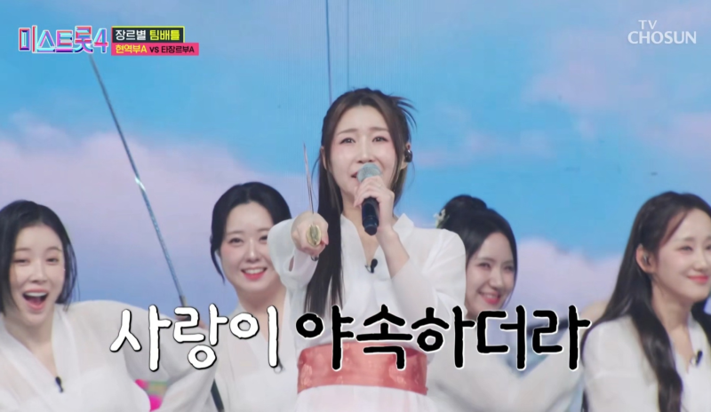 지난 8일 방송된 TV CHOSUN ‘미스트롯4’는 ‘장르별 팀 배틀’이라는 주제로 현역부 A와 타장르부 A가 ‘정통 트롯’ 장르로 맞대결을 펼쳤다.