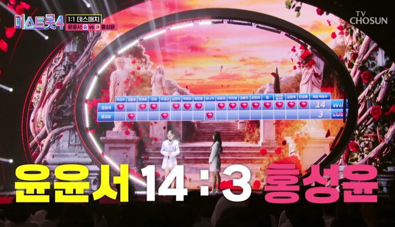 이날 윤윤서는 특유의 맑고 고운 음색에 짙은 감성을 담아 정통 트로트의 진수를 보여주며 모두를 감동시켰다. 홍성윤과의 1:1 데스매치 결과는 14:3으로 윤윤서의 압승이였다.