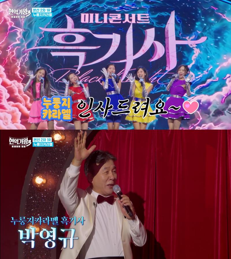 흑기사 박영규는 첫 곡 ‘소문 좀 내주세요’에 앞서 “제가 요즘 걸그룹을 키우고 있다”며 첫 무대부터 등장해 미달이 아빠 연기까지 선보이며 즐거움을 선사했다.