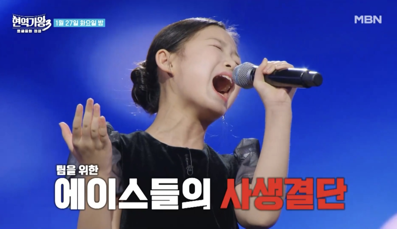 한편 MBN ‘현역가왕3’는 대한민국 장르별 톱티어 현역 가수들이 총출동, 태극마크를 향한 치열한 싸움을 펼치는 국가대표 선발 서바이벌 음악 예능이다. 6회는 27일(오늘) 밤 9시 50분에 방송된다.