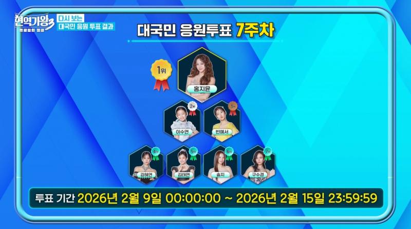 ‘현역가왕3’ 대국민 응원 투표 7주 차 투표 결과가 공개됐다.