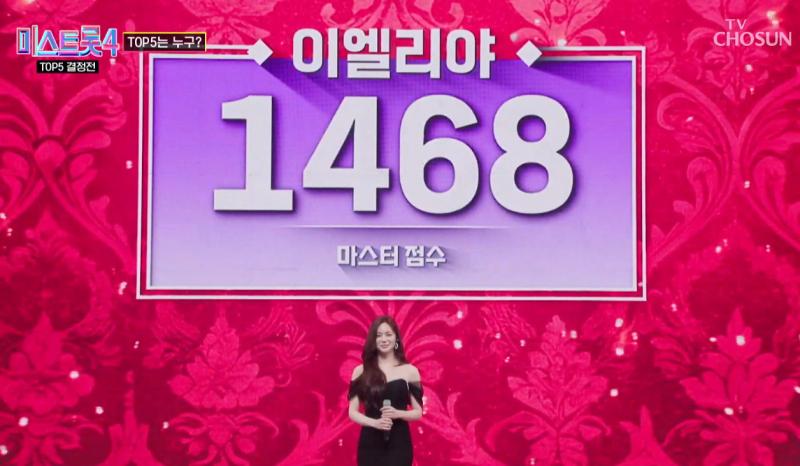 이미자의 ‘황혼의 블루스’를 특유의 애절한 허스키 보이스와 섬세한 표정 연기로 승화시킨 이엘리야에게 안성훈과 김용임 등 마스터들의 극찬이 쏟아졌음에도, 실제 점수는 1468점이라는 압도적 최하위 수치를 기록했다.