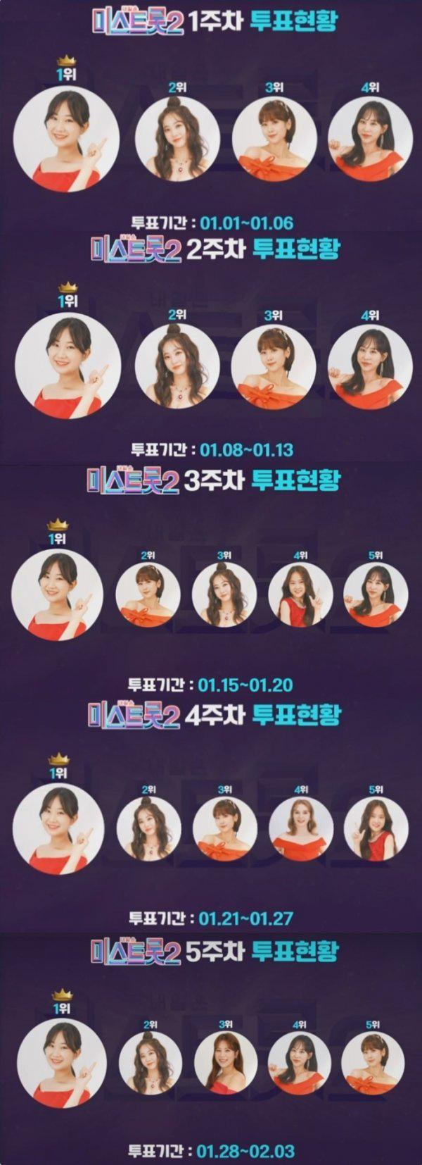 ‘미스트롯2’ 경연에서 5주 연속 대국민 응원 투표 1위를 기록하며 강력한 우승 후보로 꼽혔으나, 본선 3차전 2라운드 ‘에이스 전’에서 어이없게 탈락하며 준결승 진출에 실패하자 당시 팬덤이 겪은 집단적 충격과 아픔은 오히려 결속을 강화하는 계기가 되었다.