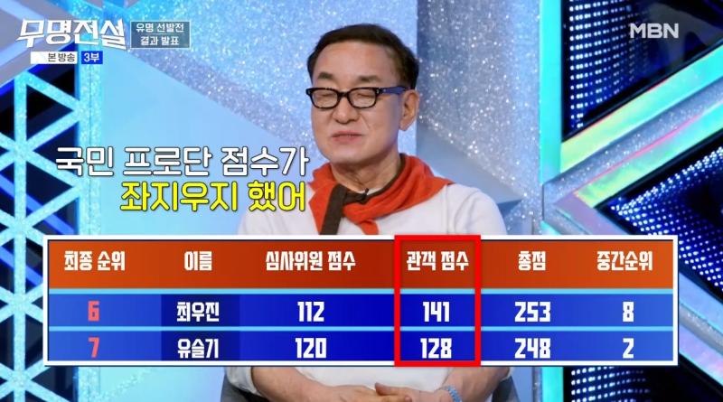 이같은 방식은 향후 경연이 진행될수록 더 강력하게 작동할 전망이다. 김우진 PD가 예고했듯 이후 라운드에서도 국민프로단과 대국민 응원 점수의 비중이 유지된다면, ‘무명전설’의 최종 우승자는 전문가가 뽑는 것이 아니라 국민이 직접 선택하는 결과물에 가장 가까워진다.