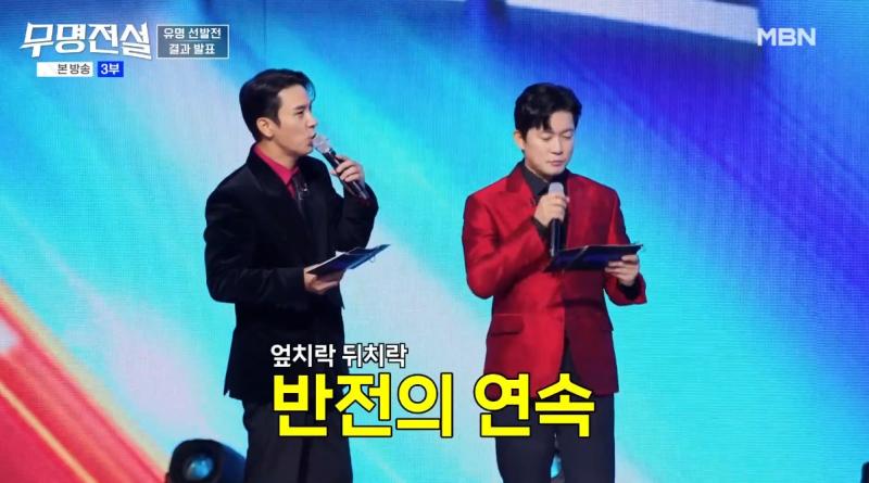 MBN ‘무명전설-트롯 사내들의 서열전쟁’(이하 무명전설)은 출발 전부터 공정성을 핵심 가치로 내세웠다. 김시중 책임CP는 “이번 경연에서 가장 중시하는 것이 공정성이며, 어떠한 경우에도 인위적인 순위 변경의혹은 없게 할 것”이라고 밝혔다. 그 말은 지난 11일 방송된 3회 ‘유명 선발전’에서 실제 숫자로 증명됐다.