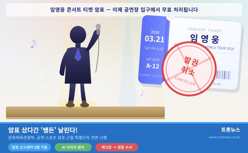 신고 센터에 예매 번호가 포함된 제보가 접수되는 즉시 해당 예매처에 통보, 티켓 발권 취소 조치가 이뤄진다. 임영웅 콘서트 암표를 웃돈 주고 샀다가 공연장 입구에서 ‘무효 처리’로 발이 묶이는 상황이 현실이 된다는 뜻이다. “암표는 결국 휴지 조각”이라는 강력한 경고다.