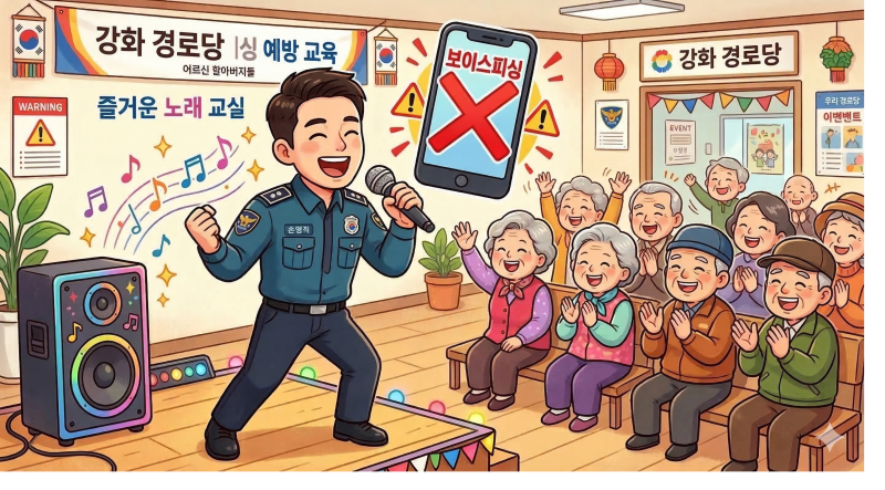 강화경찰서 손영직 경사가 발표한 범죄 예방 트로트는 경로당 등에서 인기를 끌고 있다 / 이미지= AI제작