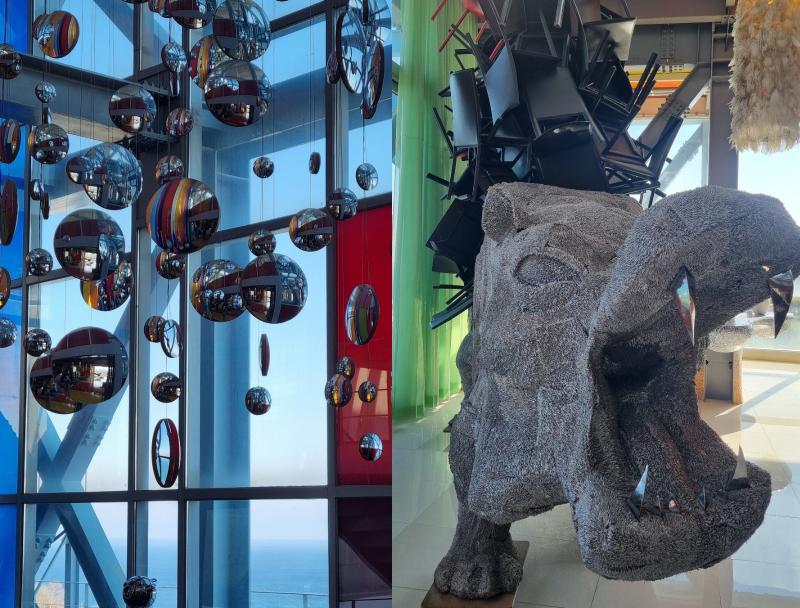 1층 매표소를 지나 들어서면, 가장 먼저 눈길을 끄는 것은 수직으로 세워진 피아노와 그 위에 거꾸로 매달린 첼로와 콘트라베이스이다. 바로 옆에는 푹신한 가죽 소파처럼 보이지만 실제로는 차갑고 단단한 금속으로 이루어진 의자가 놓여 있어, 관람객의 감각에 미묘한 혼란을 일으킨다.