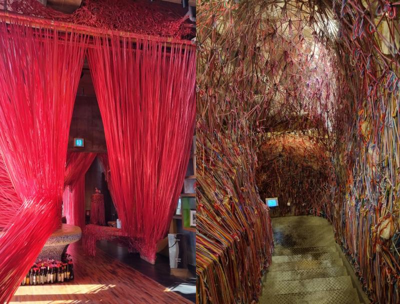 특히 카페와 맞닿은 한쪽 공간에는 천장에서 바닥까지 붉은 노끈을 팽팽하게 엮어 강렬한 색감으로 채운 최옥영 작가의 <RED>가 자리해, 지나던 발걸음을 자연스럽게 붙잡는다. 과거 매표소로 사용되다 방치되었던 공간을 새롭게 재해석한 이 작품은 평범한 통로를 머무르고 싶은 장소로 탈바꿈시켰다.