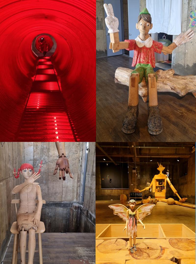 이어지는 제2관과 피노키오 박물관을 잇는 원형 통로는, 피노키오가 고래의 뱃속으로 들어가는 장면을 모티프로 한 공간이다. 내부는 투명한 비닐로 촘촘히 감싸져 있고, 다채로운 색의 조명이 끊임없이 움직이며 마치 환상적인 여정을 떠나는 듯한 몰입감을 선사한다.